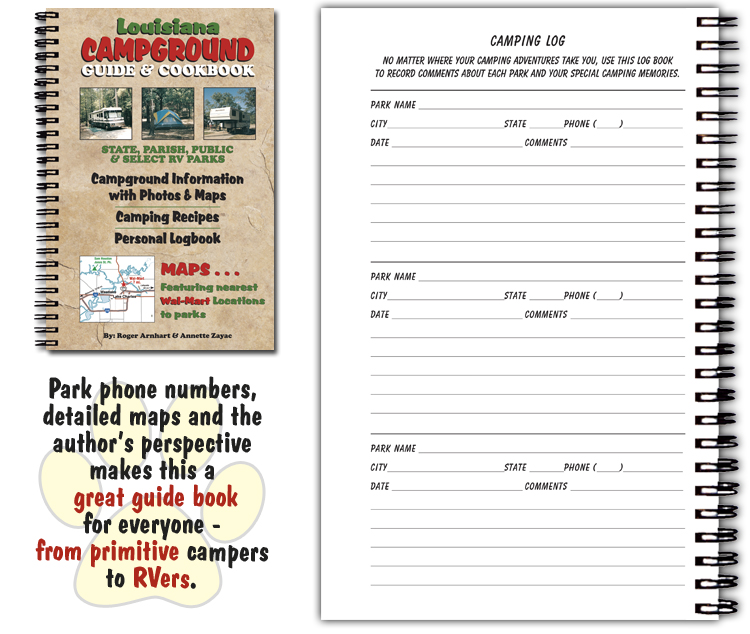 Louisiana Campground Guide & Cookbook LOG BOOK